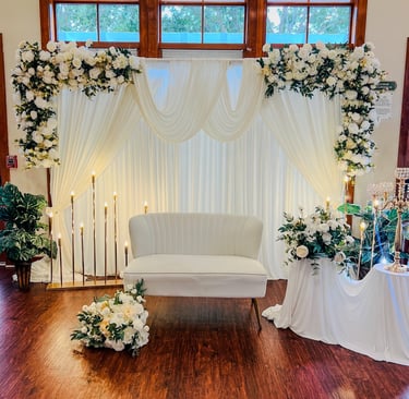 Elegant draping and optional floral accents